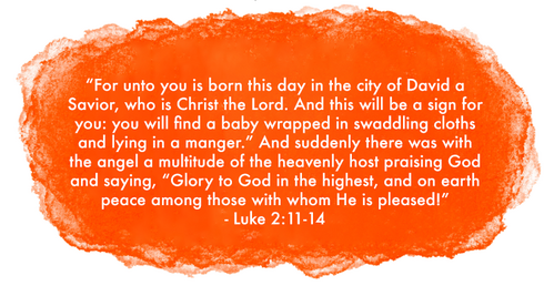 In the midst of everything going on today, stop and take some time to think about the reason we celebrate. Today’s verses are some of the most familiar ones related to Christmas. It’s the best birth announcement of all time. When the angel appeared to the shepherds to share the news of Jesus’ birth, he told them exactly who this special baby was – the Savior, Christ the Lord. Then, the most wonderful thing happened…the sky filled up with angels praising the Lord! It had to have been such a breathtaking sight to behold. Although the birth of a new baby is always something to celebrate, no infant, past or future, will receive a welcome like the one Jesus did. He is worthy of all the praise and glory we can give Him. “Glory to God in the Highest!”
