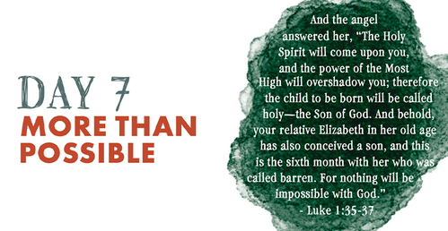 In the beginning of the world, God created all the plants, animals, lakes, mountains, the sun, the moon, and zillions of stars out of nothing! He just spoke, and everything came into being. When God created Adam, He used only dirt from the ground and His own breath. What’s impossible for us to do is more than possible for God. Gabriel’s answer to Mary’s question, “How can this be?” was amazing. The Holy Spirit was going to create the baby she would give birth to. Yet again, God would do the impossible because nothing is impossible with Him.